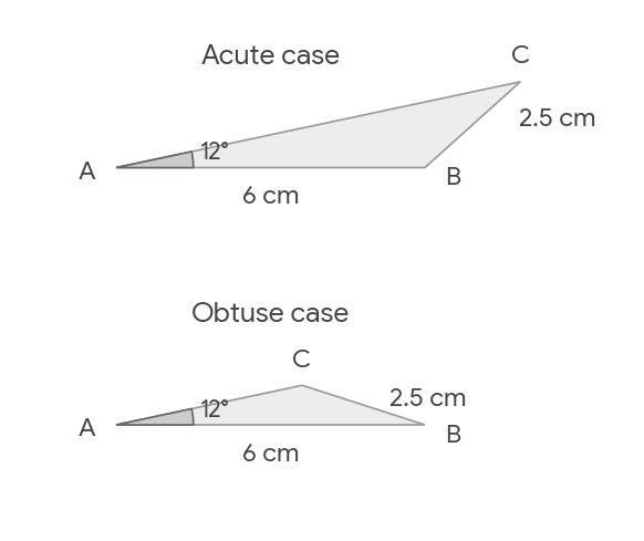 Find the two possible values of angle ACB.