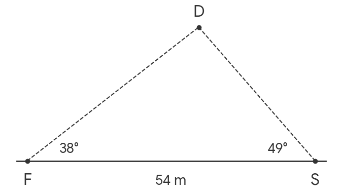 Frank and Sean are standing 54 metres apart on horizontal ground.