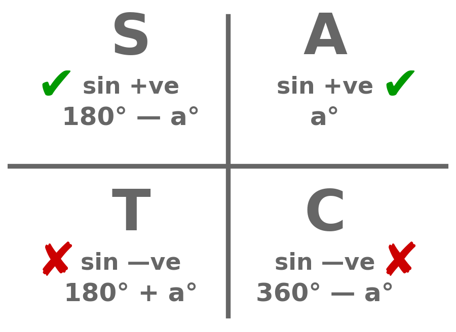 $$ \large\frac{a}{\sin A}=\frac{b}{\sin B}=\frac{c}{\sin C} $$ - In practice, we only use two of these fractions. The triangle is often labelled with different letters.