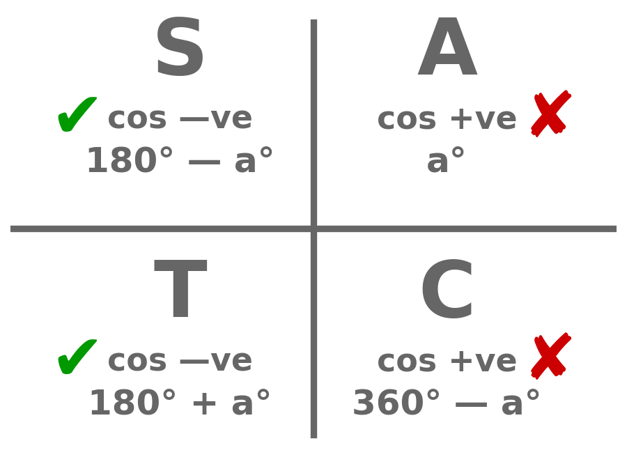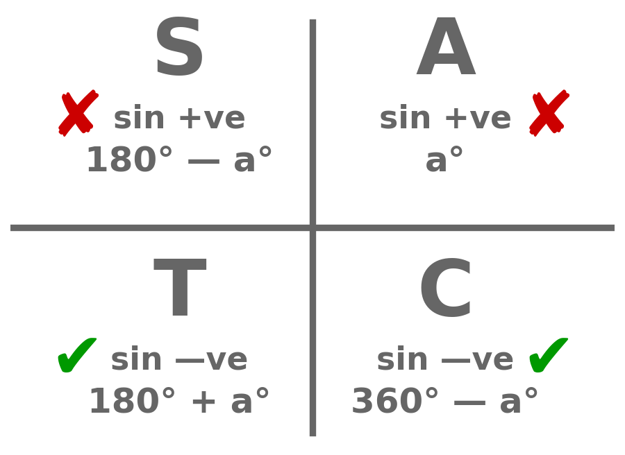 For this reason, Nat 5 exams ask for such equations to be solved within a given interval, often \(0 \leq x \lt 360.\)