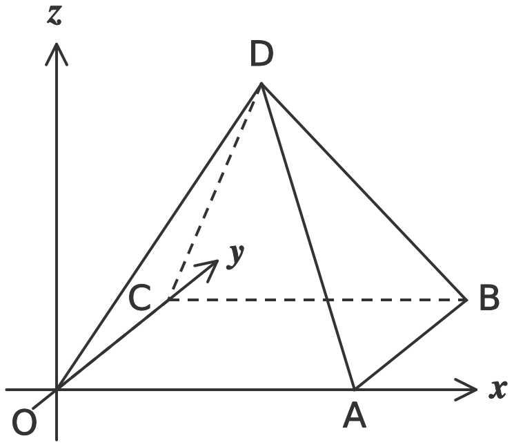 The diagram shows a rectangular-based pyramid, relative to the coordinate axes.